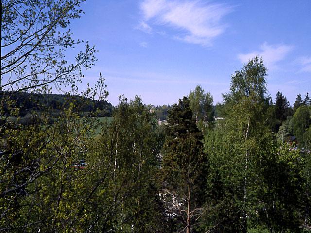 Maisema Krejansbergetiltä, keskellä siintää kartano.