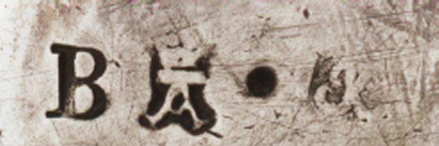 | huomiot | Osan mitat: halkaisija 5.70 cm; Nimikirjaimet: HS; Leima: kruunattu A; JK; B; Osan Pintamateriaali / käsittely: kultaus; Tyyli: varhaisrokokoo; Osa: sisusta; suu; yläreuna |