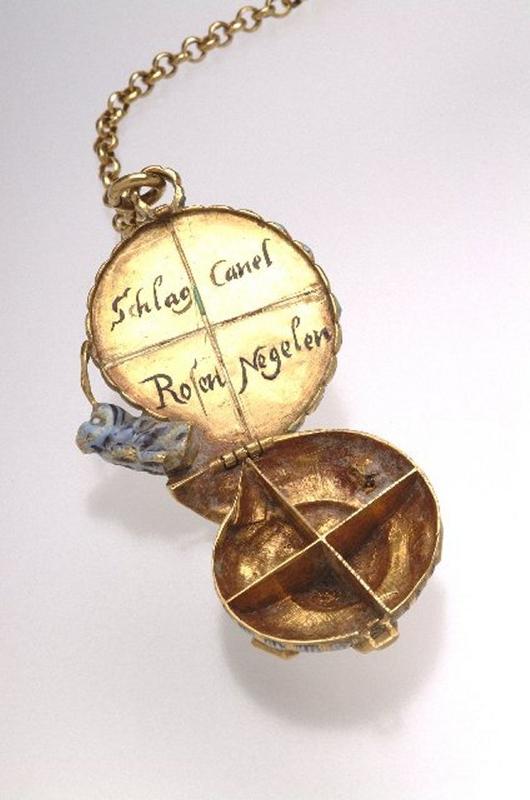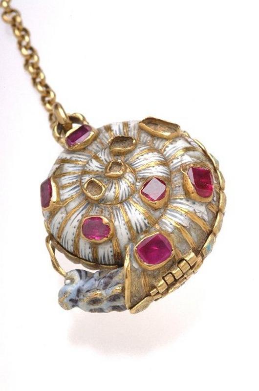 Kotelostaan päänsä ulos työntävän etanan muotoinen tuoksurasia kultaa. Kallisarvoinen äärimmäisen elegantti esine, joka todennäköisesti kuuluu 1500-luvulle, on somistettu vaaleanharmaalla emalilla ja rubiineilla, joista kuusi on jäljellä (neljä pudonnut pois). Rasia mudostaa kaksi nelilokeroista osastoa, joita peittää yhteinen välilevy, jossa lukee tuoksujen nimet: "Schlag, Canel, Rosen, Negelen, Müssche, Rüten, Citronen, Rosmar". Pieni renkaallinen ketju osoittaa, että omistajatar on käyttänyt sitä myös kulkiessaan huoneensa ulkopuolella.