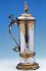 Korkea, kapea lieriökannu. Jalkarengas, kupera, profiloitu. Kansi kupera, profiloitu, nuppina soturi kilpi kädessä. Kädensija S-muotoinen, alhaalla päättyy plastilliseen hevosenpäähän; peukaloripana leveä kierukka. Jalkarenkaassa ja kannen keskikupurassa pakotettu renessanssikoristelu: jäykkien nauhakartussien keskellä maskit ja välissä hedelmäryhmiä sekä levitetyin siivin astelevia lintuja. Kannun alaosassa hopea-nyöri. jonka koristeena kaksi valettua enkelinpäätä. Nyörin kohdalla, yläreunassa ja kannessa renessanssityylinen kaiverruskoristelu: symmetristä nauhasuikeroa, joka järjestyy suuremmiksi kolmiokielekkeiksi. Pakotukset ja kaiverrukset ovat kullatut. Kannun halk. 8 cm, jalan halk. 10,5 cm.