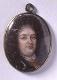 Soikea emaliminiatyyri. Miehen rintakuva oikealle. Suuri musta kihara peruukki, ruskeat silmät. Kullattu haarniska, valkoinen pitsikaulaliina. Siniharmaa tausta. Kääntöpuoli vaaleansininen. Kapea hopeakehys jossa ripustuslenkki.
