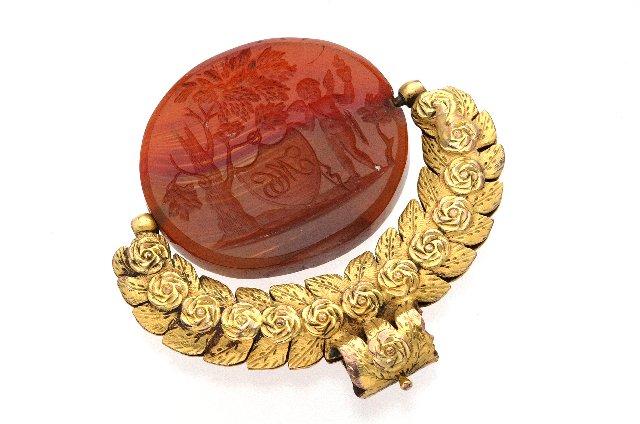 Berlokki, jonka muodostavat koristeinen messinkisanka ja pitkänpyöreä karneoli, jonka toiselle puolelle piirretty enkelin ja puun kuva sekä kilpi jossa alkukirjaimet MC; toiselle puolelle on piirretty enkelin kuva ajamassa koiraa sekä kirjoitus: "Fidelité me guide".