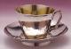 Osan mitat: halkaisija 8.10 cm; korkeus 6.60 cm; halkaisija 13.10 cm; Leima: kruunu ja vene; S 2; RM; kruunu; T 2; Tyyli: uusrokokoo; Merkinnän kuvaus: suorakaiteessa; Osa: kupin suu; kuppi; teevati