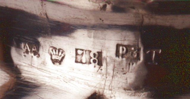 | huomiot | Osan mitat: pituus 4.90 cm; pituus 6.90 cm; Nimikirjaimet: AA; Osan Pintamateriaali / käsittely: kultaus; Tyyli: uusrokokoo; Merkintätekniikka: kaiverrus; Osa: pohja; sisusta; suu; Leima: AA; kruunu; 78; P3; T; Merkinnän kuvaus: kaunokirjoituskirjaimin; suorakaiteessa |