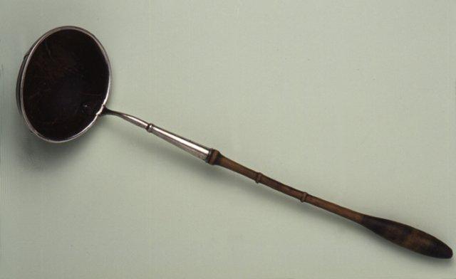Pesä syvä, tummanruskeaa kookospuuta, reunaa kiertää kapea, sileä nauha, joka pesän pohjaan muodostaa poikittaisen ristin. Varren alaosa hopeaa, sileä, poikkileikkaukseltaan pyöreä, keskellä pieni profiilirengas. Varren yläosa mustaksi maalattua puuta, sorvattu.
