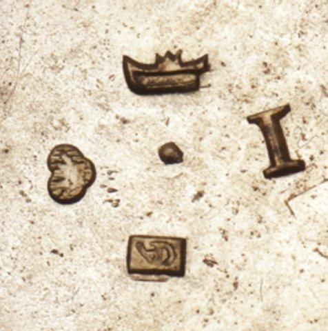 Sinappitölkin lieriömäinen, sivuista nauhamaisesti lävistetty, saranakantinen pesä on kiinnitetty pyöreään jalustaan, jossa on lävistetty pystyreunus. Jalustan päällistä koristaa lehtinauha, sivuja riippuva lehtiköynnös; kolme käpäläjalkaa, jalkojen välissä draperia-aiheista koristelua. Pyöreän rengasmaisen kädensijan päällä lehtikoriste. Kannessa on ruusukemainen nuppi. Koristeena on runsaasti erilaisia lävistettyjä lehti-, ruusuke- ym. nauhoja. Lasiastia sisältä puuttuu.