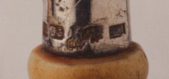 | huomiot | Osan tekniikka: metallityö; Osan materiaali: metalli; luu; Leima: RM; vene; G3; 13; Tyyli: uusgotiikka; Osa: helistin; varsi |