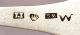 Nimikirjaimet: II; Leima: II; kruunu; S2; W; Osan Pintamateriaali / käsittely: kultaus; Tyyli: uusrokokoo; Koristelu: kiemuranauha, simpukka; Merkinnän kuvaus: suorakaiteessa; kaunokirjoituskirjaimin; Merkintätekniikka: kaiverrus; Osa: pesän sisusta