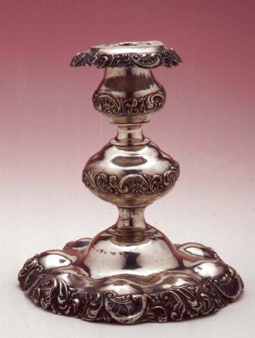 | huomiot | Osan mitat: halkaisija 12.00 cm; Leima: kruunu; X2; 13L; Tyyli: uusrokokoo; Koristelu: kiemurakoristeisia stanssattuja nauhoja; Osa: jalka |