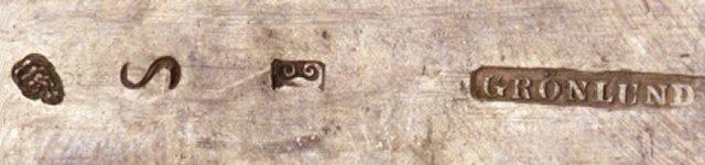 | huomiot | Osan mitat: määrittelemätön ulottuvuus 14.00 cm; määrittelemätön ulottuvuus 12.00 cm; Osan materiaali: puu; Leima: GRÖNLUND; kruunu; S; Tyyli: biedermeier; Merkinnän kuvaus: suorakaiteessa; Osa: kädensija; läpimitta; nuppi |