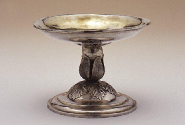 Matala, pyöreä, jalallinen. Malja leveä, laakea. Jalka matala, kellomainen, yläosassa kiertää akantuslehtituppi. Jalan keskeltä kohoaa viisi pystyä lehdykkää, jotka kiinnittyvät maljan pohjassa olevaan pyöreään palloon. Maljan pohjassa pallon ympärillä on lehdykkätuppi. Maljan sisusta kullattu.