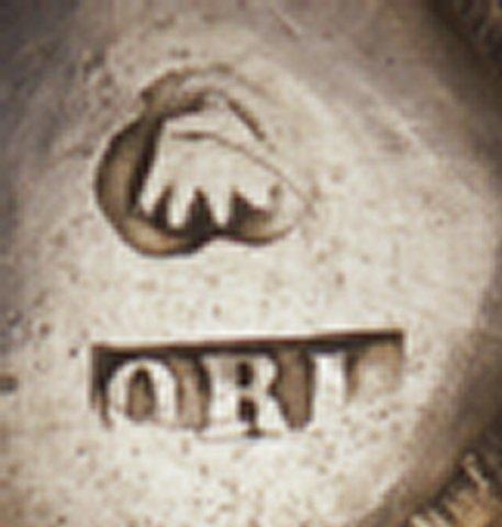| huomiot | Osan mitat: halkaisija 3.40 cm; halkaisija 4.50 cm; Leima: kruunu; ORL; Tyyli: varhaisrokokoo; Merkinnän kuvaus: leiman alareuna vajaa; Osa: jalka; suu |