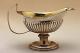 Korkeahko, kypäränmuotoinen. Soikea profiloitu jalkalevy, jonka reunassa stanssattu koristenauha, jalka ontto, godronnoidun lehtikauluksen koristama. Pesän pohjassa ja reunassa godronnointia, sisäpuolelta kullattu. Litteä, alaspäin kapeneva, taivutettu kädensija.