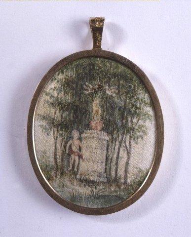 | merkinnän sijainti | kuvan oikeassa reunassa; kääntöpuolella olevassa maalauksessa muistokivessä; miniatyyrin kehyksessä |