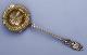 Pyöreä, puristettu pesä, jossa pyöreät pienet reiät. Varsi reunoista uurteinen päätyen kartussimaiseen lehtikoristeeseen, johon kaiverrettu: Tutti.