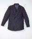 Tummansininen, toimikassidoksinen takki. Kangas melko ohutta villakangasta. Napitus on 2-rivinen, nappeja 3 paria. Taskut päälleommellut, kulmat pyöristetyt, keskellä 4 paria pystysuoria 0,7 cm:n laskoksia. Taskuissa kansi, kannen alareuna muotoiltu, keskellä napinläpi. Taskujen napit edessä olevien kaltaiset, yhteensä niitä on 10 kpl. Nappi on mustansininen, kannallinen, halkaisija 2 cm, muistuttaa nahkasiisnalla päällystettyä. Hihansuussa halkio, jonka koristeena on 2 kappaletta samanlaisia, mutta ruskeita nappeja. Takin selkä poikittain kolmesta eri kappaleesta. Hartiakaarroke on keskeltä ylöspäin kaarrettu. Vyötäröltä ylöspäin on molemmin puolin 4 kpl samanlaisia laskoksia kuin taskuissa. Vyötäröllä on 5 cm leveä, kiinniommeltu suora vyö, jonka sivuilla on koristeeksi ommellut napit. Takin vuori on tummansinistä raidallista silkkisatiinia. Molemmin puolin povitaskut.