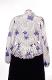 Kangas on valkoista keinosilkkiä jossa sinisiä kukkakuvioita. Etuhalkiossa kuusi nepparia. Kauluksen reunassa on kapea pitsi joka ulottuu oikealla puolen halkiota helman yläreunaan asti. Olkapäältä rinnalle lähtevät molemmin puolin kaarevat röyhelöt, joiden alareunassa nylonpitsi. Helman alareunassa on kapea nylonpitsi. Helman yläreuna on päärmätty ja rypytetty etu- ja takakappaleiden päälle. Selkäpuolella v-muotoinen röyhelö jonka alareunassa pitsi. Hihojen alaosat ommeltu kuudella päällekkäisellä kumilangalla joustavaksi rannekkeeksi. Hihansuun päärmeeseen on pujotettu kumilanka.