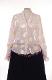 Vaaleanpunaista ohutta sifonkia. Kankaassa on suuria, kullankeltaisia kirjottuja kukkia. Etuhalkio kiinnitetty neljällä nepparilla. Hihat poimutettu kuudella päällekkäin olevalla kumilangalla, joiden avulla muodostettu joustava ranneke. Alhaalta kapeasti päärmätty helma on tehty kolmesta kaitaleesta. Väljät hihat rypytetty olkapäiltä.