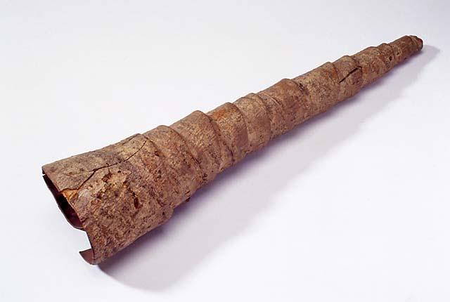 Lepän kuorinauhasta kiertämällä tehty sormiaukoton trumpettisoitin.