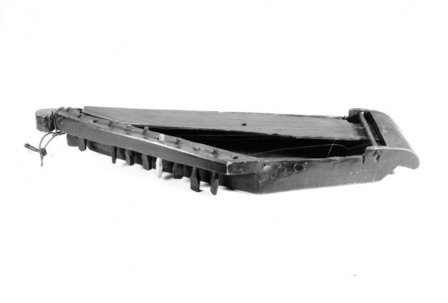 11-kielinen kantele. Soittimen yksipuinen koppa on koverrettu ylhäältäpäin ontoksi ja peitetty kannella. Kansi, josta lähes puolet puuttuu on upotettu paksuudeltaan koppaan. Jäljellä olevassa kannen osassa on yksi pyöreä äänireikä, halkaisijaltaan 1,2 cm. Kopan sivuissa on lisäksi oksanreikiä. Lavan alta koppaa on paikattu ohuesta puulevystä tehdyllä puolipyöreällä paikalla, joka on kiinnitetty puunauloin. Ponnessa kaiverrettu vuosiluku 1873. Viritystapit ovat puuta, niistä yksi on uusittu museossa vuonna 1915. Samalla on uusittu myös kielet 2, 5, 7 ja 9. Metallikieliä nyt jäljellä 7. Kielet kiinnittyvät toisesta päästään metallivartaaseen. Soittimen sisällä on kaksi irrallista metallilistaa, jotka lienevät soittimen alkuperäiset tallat. Kanteleen kärkeen on sidottu ripustusnaru. Soitin on tummunut mustaksi.