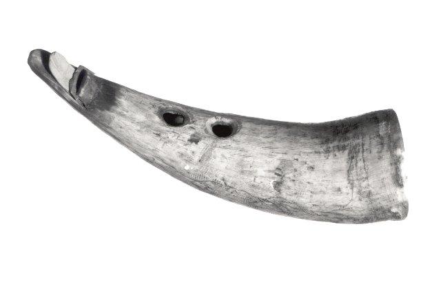 Lehmän sarvesta tehty klarinettisoitin, jossa kaksi sormiaukkoa. Lehdykkä on tehty tuohesta ja kiilattu toisella tuohipalalla puhalluspäässä olevaan rakoon.