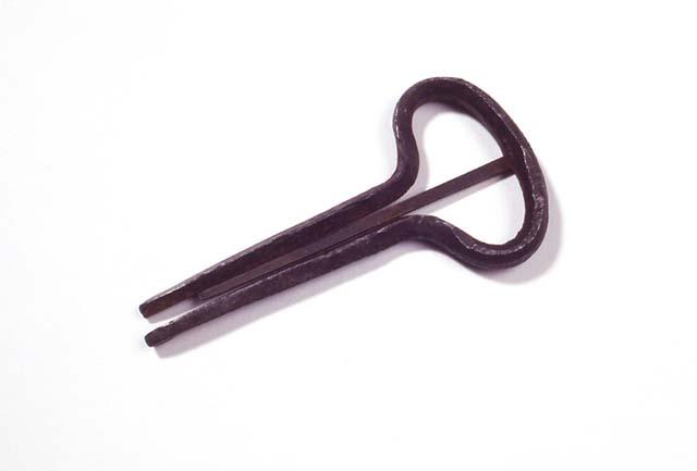 Suuharppu, rautainen silmukka, jonka sakaroiden väliin on kiinnitetty teräskieli. Kielen pää katkennut.