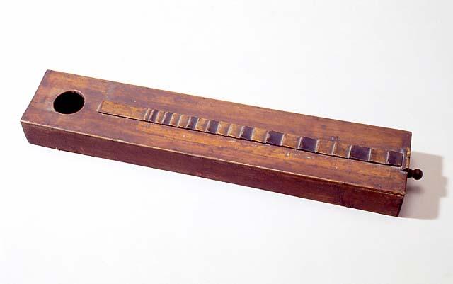 Virsikantele. Soittimen toinen päätylauta, viritystappi ja kieli puuttuvat. Virsikanteleen koppa on valmistettu ohuista puulevyistä. Kansi ja pohja on naulattu kiinni sivu- ja päätylautoihin. Kannessa on pyöreä ääniaukko, halkaisijaltaan 4 cm. Jäljellä olevassa päätylaudassa on tappi, johon kieli on ollut kiinnitettynä. Soittimen pohjassa on heikosti erottuvaa kirjoitusta. Kielen soiva pituus, eli mensuuri on ollut 48 cm. Kannen keskellä on pykälälauta, jota vasten kieltä painamalla on saatu sävelasteikko. Pykälälaudassa on 21 pykälää, joista osa on värjätty mustiksi. Kromaattinen asteikko. Sävelala oktaavi + seksti (C - A). Pykälälauta on liitetty suoraan kanteen kiinni. Kannen jäljistä päätellen pykälälaudan viereen on todennäköisesti ollut kiinnitettynä paperiliuska, johon sävelasteikko on merkitty.