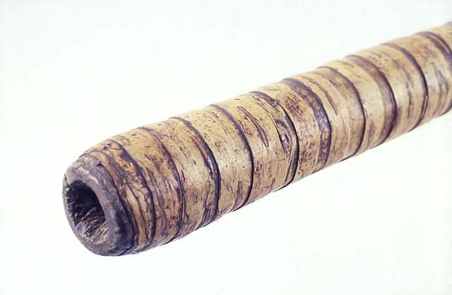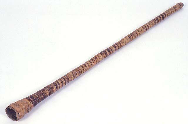 Pitkä puurunkoinen, tuohella päällystetty torvi, luikku.