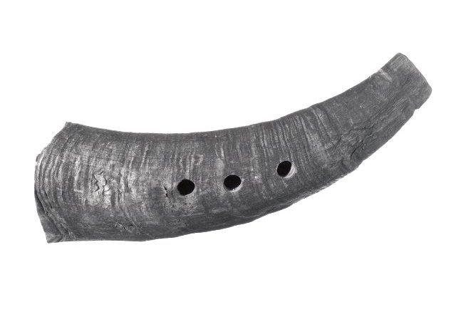 Pukin sarvesta tehty soitin, jossa kolme sormiaukkoa.