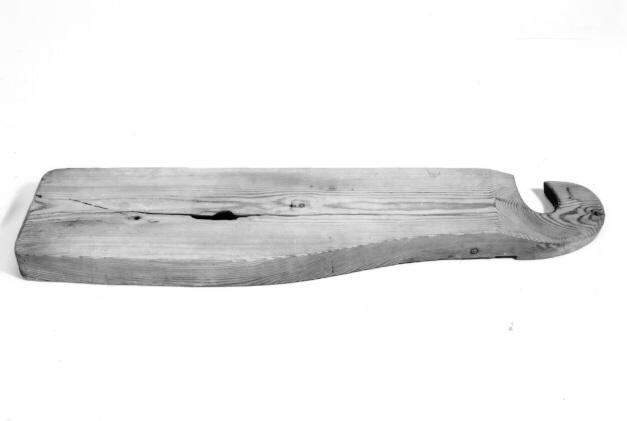 Tunnistamattoman soittimen koppa. Materiaali mäntyä. Päältä koverrettu ontoksi. Kantta varten tehty 5 mm upotus. Soittimessa ei ole viritystappien eikä muidenkaan osien jäänteitä. Kapeampaan päähän on tehty 3 cm leveä alaspäin levenevä ura.