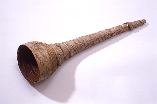 Suurikokoinen tuohesta kierretty torvi. Museoon tullessa ollut uusi, mutta vanhan mallin mukaan tehty.