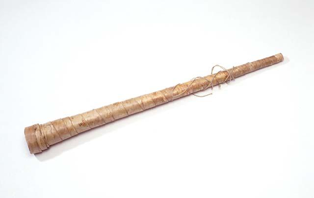 Pitkä, tuohinauhasta kierretty, kartiomaisesti levenevä paimentorvi. Tuohinauhan ulkopinta päälläpäin. Tuohisiisnan pää on kiinnitetty pienellä naulalla.