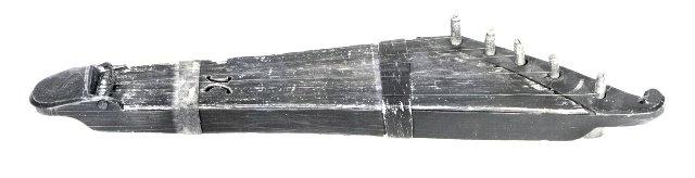 Viisikielinen kantele. Yksipuinen, tasapohjainen koppa on koverrettu päältäpäin ontoksi ja peitetty kannella. Kansi on upotettu paksuudeltaan koppaan ja kiinnitetty kahdella tuohivanteella. Museoon tullessa kanteleessa on ollut kaksi vaskikieltä, muut kielet on lisätty museossa. Kannessa on kaksi kaarevaa ääniaukkoa, pituudeltaan 2,8 ja 2,9 cm. Rautavartaan toinen pää on upotettu ponteen, toinen pää on kiinnitetty ponnen lohjettua rautalenkillä. Alkuperäisluetteloinnin mukaan puiset viritystapit ovat kanteletta uudemmat. Niiden pituus vaihtelee välillä 9-9,5 cm. Kanteleen kärjessä on pieni kierukka ja siinä reikä. Soitin on tummunut.