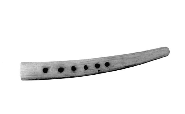 Käyrä, puusta tehty sarven mallinen soitin, joka on jäänyt keskentekoiseksi. Poraus todennäköisesti tehty ensin poralla, minkä jälkeen sitä on laajennettu ainakin poltinraudalla. Sormiaukkoja on 6.