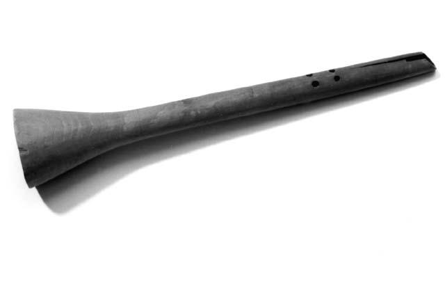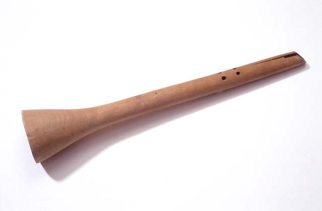 Paksusta lepänrungosta valmistettu soitin. Kyseessä on todennäköisimmin klarinettisoitin, sillä puhalluspää on vino ja oletetun lehdykän sidontakohdassa on ollut kiinnitysura, joka tosin on murtunut. Soittimen poraus on poltettu poltinraudalla ja kaikusuppilo on tehty kovertamalla. Neljä sormiaukkoa on poltettu ja pyöristetty sitten puukolla. Sormiaukot ovat kahdessa rivissä rinnakkain. Soittimeen on myöhemmin lisätty peukaloaukko. Sormiaukoilla lienee ollut merkitystä lähinnä eläinten pelottelussa.