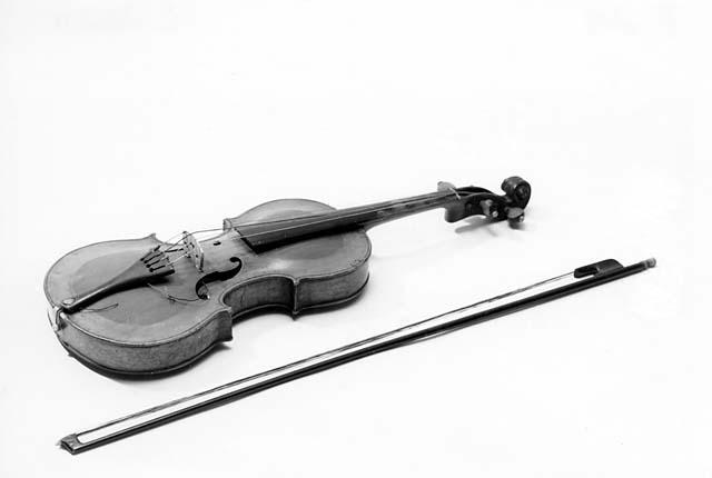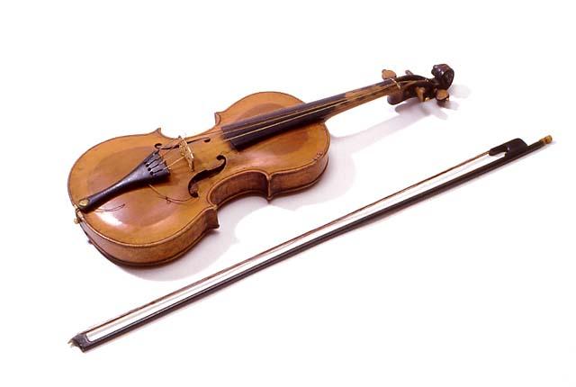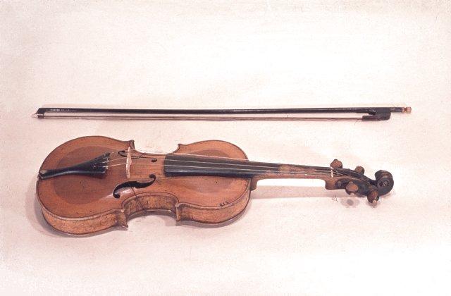 Viulu jousineen. Viulu on vaaleaa puuta, sarjat visakoivua. Otelauta ja kielenpidin tummaksi maalattua puuta. Alasatula ja peränuppi norsunluuta. Kielenpitimessä messinkilaatta. Äänipinna, jossa suolikieli solmittuna liikuttamista varten. Viulu on konservoitu museossa vuonna 1971, jolloin siihen on lisätty puuttuneet kaksi kieltä sekä talla. Jousi tummaksi petsattua puuta. Tummat jouhet.
