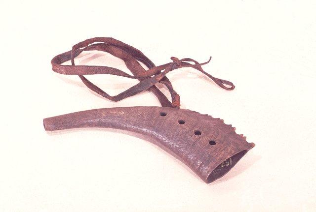 Pukinsarvesta tehty paimentorvi. Sormiaukkoja neljä, sivussa yksi ripustusreikä, jossa nahkainen kanninnauha. Ulkosyrjä koristeltu sahalaitaiseksi.