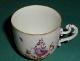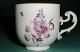 Meissenin posliinia oleva valkoinen, lasitettu kuppi. Suorareunainen kuppi, jossa on profiloitu korva. Suuosa on loivasti ulospäin profiloitu. Kupissa on profiloitu, kaksoisvolyyttimainen korva. Kuppi on lasitettu pohjarenkaan alapintaa lukuun ottamatta. Kirkkaan lasitteen päälle maalattu viininpunaisia kukka-aiheisia koristeita, Deutsche Blumen. Posliinimassan väri valkoinen.