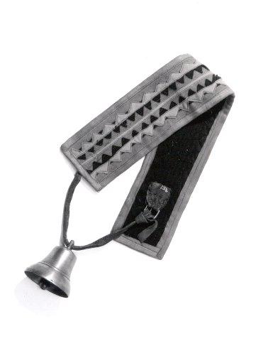 Pohja on punaista verkaa ja sen päälle on ommeltu kaksi sinistä ja kaksi keltaista sahanterälaitaista kaitaletta päällekkäin siten, että terien kärjet osoittavat vastakkaisiin suuntiin. Pituussuunnassa keskelle on ommeltu kapea keltainen verkanauha. Vuori on sinistä verkaa. Reunat on huoliteltu turkoosinsinisellä ostonauhalla. Koneella ommeltu. Tiukuriisin päitä yhdistää nahkahihna, joka on kiinnitetty solmulla toisessa päässä olevaan solkeen. Hihnassa on messinkinen kello (dinga eli tiuku). Ei leimoja.