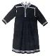 Pojan/ miehen takki, tummansinistä verkaa. Etukappale suorakaiteen mallinen, sen molemmin puolin ommellut sivukappaleet ulottuvat pitkälle selkäpuolelle. Selkäpuolella sivukappaleen yläosa on ommeltu erillisestä kappaleesta, saumassa on sahalaitainen verkakoristelu. Takana keskellä on kaksi takakappaletta sekä niiden molemmin puolin kaksi kiilaa. Pystykauluksen molemmin puolin olkakappaleet. Pääntie suljetaan hakasella. Hihat leikattu yhdestä kappaleesta. Sekä etu- että takapuolella on nähtävissä sisäänoton jäljet. Erivärisin langoin ommeltu.