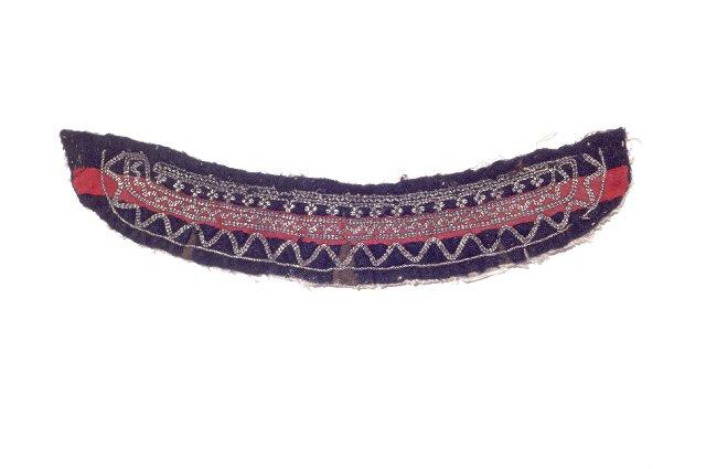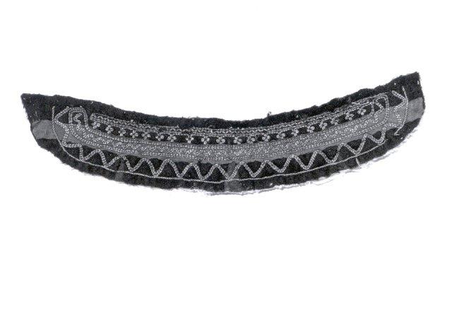 Tinalankakirjonnalla koristeltu naisen puvun kaulus.