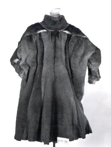 Etupuoli on ommeltu etukappaleesta, jonka molemmin puolin leveyttä on lisätty lyhyemmin kiiloin. Hartioilla kauluksen molemmin puolin on kaarrokkeet, joiden selän puoleisissa reunoissa on kapeat punaiset varkatereet. Selkäpuoli ommeltu takakappaleesta sekä sen molemmin puolin kahdesta takasivukappaleesta. Näiden väliin on lisätty kiiloja väljyyttä antamaan. Takakappaleiden yläreunaan on ommeltu 6 kpl eri pituisia pystysuoria tereitä punaisesta verasta. Pääntie on v-mallinen ja sen molemmin puolin on kiinnitetty punaisesta ja keltaisesta villalangasta palmikoidut nyörit (28 cm), joiden päissä on hapsullisiksi leikatut kolmion malliset verkatilkut. Kaulus on korkea (11 cm) ja väljä. Sen ylä reunaan on ommeltu 3 cm leveä punainen verkakaitale, jonka päät riippuvat vapaina peskin etupuolella. Hihat on ommeltu kahdesta suuremmasta kappaleesta sekä kahdesta lisäkiilasta. Rannekkeet sekä kauluksen sisäpuoli on vaaleampaa turkista kuin muut kappaleet.