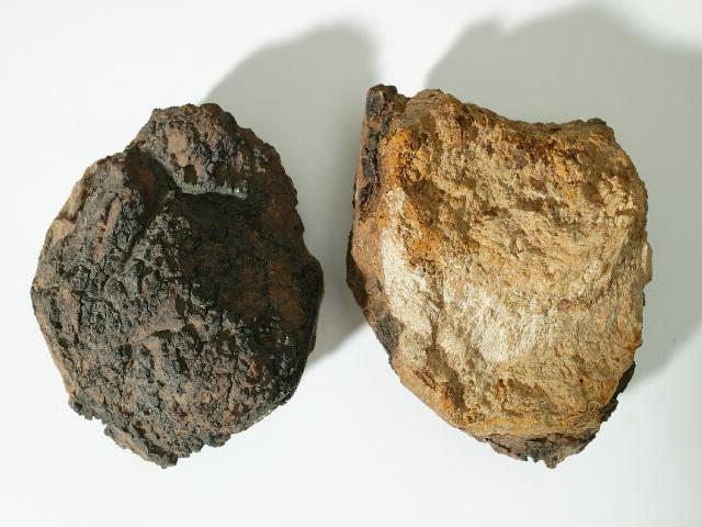 Savustusainetta. Kaksi tummaa kimpaletta.