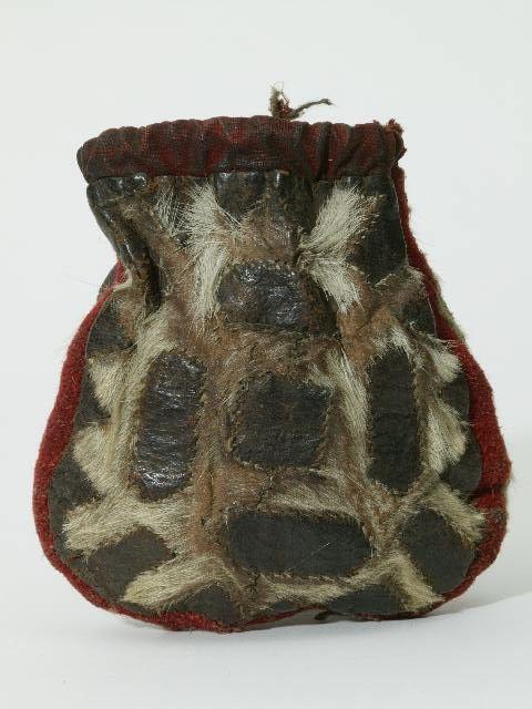 Tuluskukkaro on valmistettu mosaiikkitekniikalla. Pussin suuhun on pujotettu nahkainen kiristysnauha. Sivukappaleet ovat punaista verkakangasta. Etu- ja takakappaleet on tehty valkoisesta poronvuodasta ja ostonahkasta. Kuvio: norma 'lavitsa'.
