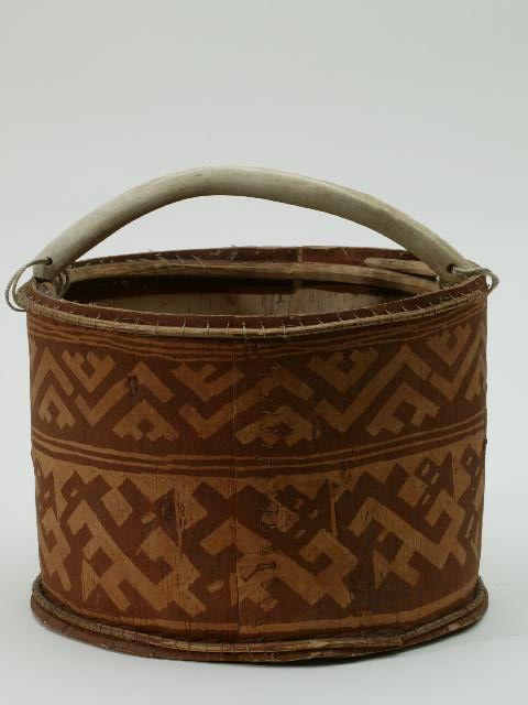 Vesisanko on tehty tuohilevystä ompelemalla. Sangon reunat on vahvistettu vanteella, joka on ommeltu tuoheen kiinni. Kahva on luuta. Vesisangon ulkopinta on koristeltu raaputtamalla. Kuviot ylärivissä: Haranjt 'porohärän sarvi' ja alarivissä: pungk njoHs 'soopeli, jolla on pää'.