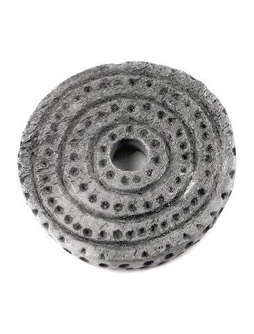 Sarveisaineesta tehty uurrekoristeltu värttinänpyörä.