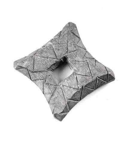 Puusta tehty uurrekoristeltu, neliskanttinen värttinänpyörä.