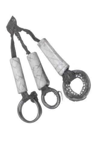 Esineen rungon muodostaa (alaspäin levenevä, yläpäästään 2,5 cm leveä, 14-17 cm pitkä) nahkasuikale, joka on alareunastaan leikattu kolmeen osaan ja vain ylimmät 1,5 cm on yhtä suikaletta. Jokaiseen kolmeen suikaleeseen on pujotettu poronluinen putki, joka on koristeltu ristein ja viivoin puukonkärjellä raaputtamalla. Nahkasuikaleiden alapäihin on kiinnitetty messinkirenkaat (yht. 4 kpl) estämään luiden putoaminen.