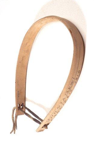 Yhdestä ohuesta ja 4,3 cm leveästä puunkappaleesta hevosenkengänmuotoiseksi taivutettu kaari. Reunat on viistottu. Molemmissa päissä on kaksi reikää, joiden läpi on pujotettu nahkanyöri.