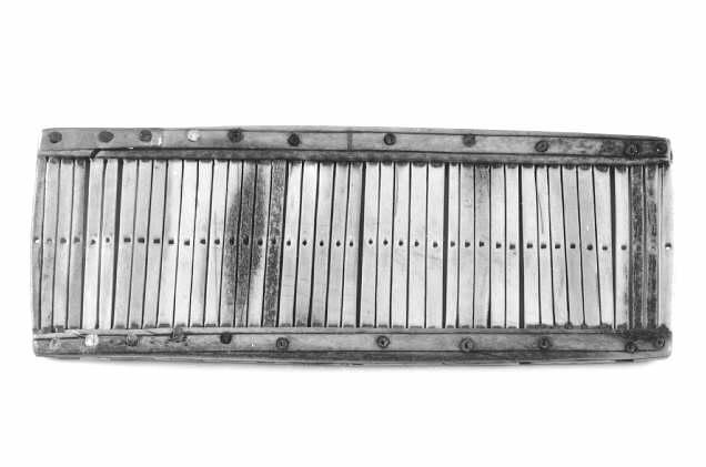 Litteä lauta, jossa on samansuuntaisia pystysuoria rakoja ja niiden välissä samalla korkeudella rivi reikiä. Sillä on valmistettu luusta valmistetun kävyn avulla villalangasta kengänpauloja ja vöitä. Messinkinauloin kokoonliitetty.